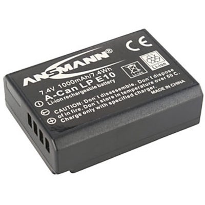 The Ansmann A-Can LP-E10 1000 mAh 7.4V is a replacement rechargeable lithium ion battery, equivalent to the Canon LP-E10 Battery for Canon EOS 1100D, 2000D and 4000D Digital SLRs.