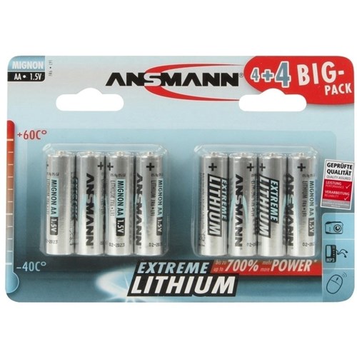 Ansmann Extreme Lithium Range 8 x AA Batteries