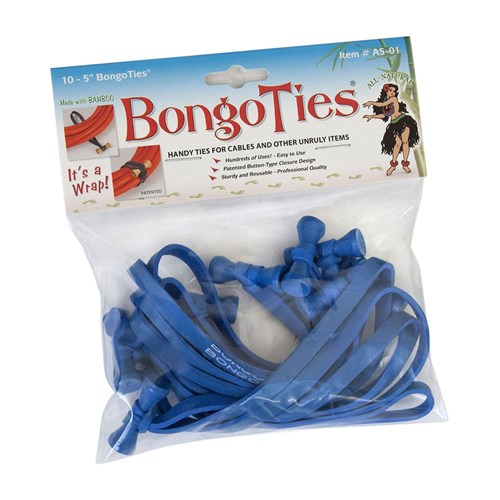 BongoTies offer a simple and sturdy solution for securing cables and other items. Made with premium elastic and bamboo, these 5-inch ties feature a patented button-type closure for a firm hold. Designed for professional use in audio, video, and photography, they keep cables neat and tangle-free. Reusable and durable, they are a reliable choice for home, office, stage, and workshop applications.