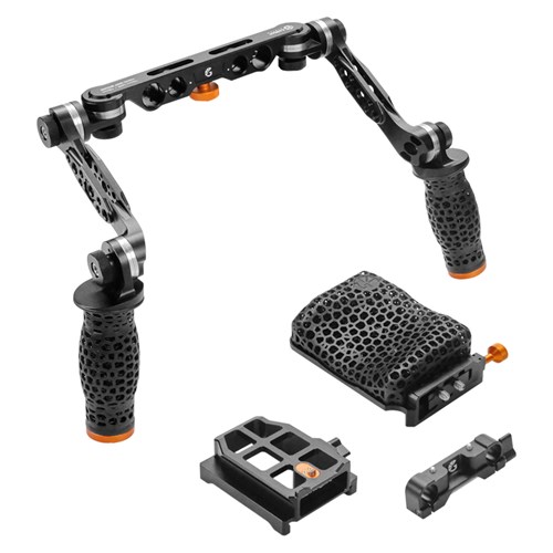 The Bright Tangerine LeftField 2 KASBAH Shoulder Pad + 15mm LWS/19mm Handle Kit provides optimal comfort and pressure relief for camera operators. It features a configurable hand grip for versatile handheld positions and uses Digital Light Synthesis technology for superior comfort and airflow. The kit is durable, easy to clean, and compatible with various baseplates and third-party manufacturers.