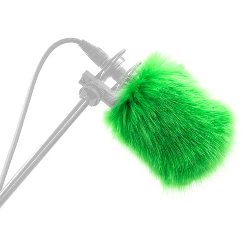 For use in light to medium winds, The Short-Haired Spacer Cover in Green size Xs+, helps you strike a balance between wind protection and frequency transparency when using The Spacer Bubble. This product is a short-haired slip-on fur for people who already own The Spacer Bubble.