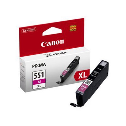 The Canon CLI-551XL Magenta Ink Cartridge is for use with the Canon Pixma MG6350, MG5450 and iP7250 printers. The CLI-551 inks create professional looking prints for both colour and black and white prints.