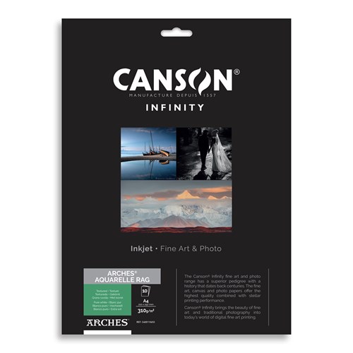 ARCHES Aquarelle Rag, a 310g watercolour paper, offers an authentic base for fine art prints. Crafted with 100% cotton and a traditional cylinder mould process, it ensures exceptional quality and natural beauty. Ideal for photographers, artists, and printmakers, it delivers superb tonal range, deep blacks, and pure whites.