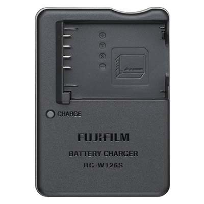 A replacement battery charger for the Fujifilm NP-W126 and NP-W126S batteries, as used in cameras such as the X-T3, X-E1, and X-Pro1.