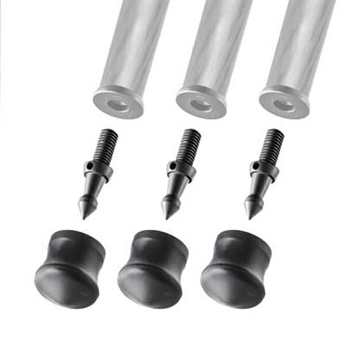 The Gitzo Spike + Rubber Foot is for use on softer terrains such as grass or mud, and is compatible with all Gitzo tripods with 3/8" threads. The rubber foot is attached to the short spike like a cap, and can be pulled off in order to use the spike. The rubber material is very stable, even on slippery floors. A 38mm rubber cap is included.