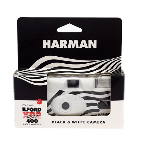- Single-use camera with XP2 SUPER black and white film