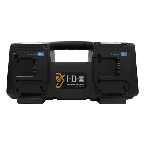 The BL-4SX 4-Bay Charger by IDX is designed for fast, simultaneous charging of up to four HV-160B and HV-320B 28V B-mount batteries. It delivers up to 3A and 100W per channel and features a 3.5-inch LCD displaying real-time battery status and cycle data. Large LED indicators ensure clear visibility from a distance, while the 90-240 VAC input supports worldwide operation.