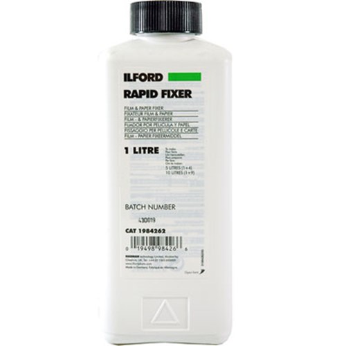 Ilford RAPID FIXER 1lt 1984262 (1) is a non-hardening rapid fixer supplied as a liquid concentrate that is diluted with water for use. The fixing agent in Ilford Rapid Fixer is ammonium thiosulphate, and contains no sodium thiosulphate (hypo).