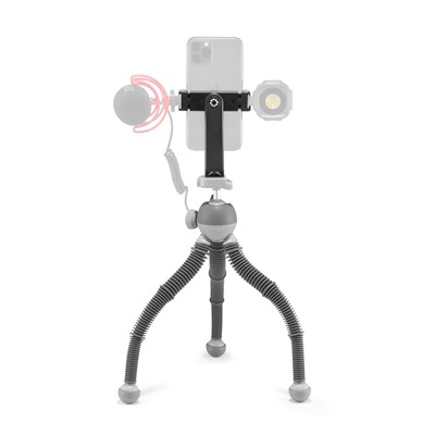With the addition of the JOBY GripTight 360 Phone Mount, you are able to mount various accessories to include lights and mobile mic systems via the dual cold-shoe attachment points at either side of the mount.
