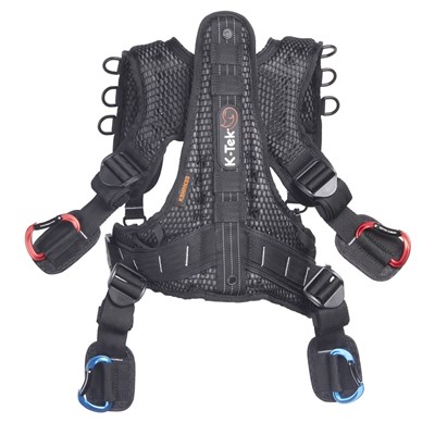 The K-Tek Stingray Audio Harness (Small) provides improved comfort when carrying audio equipment. The exoskeleton has a more robust and sturdy rigid spine design that effectively and evenly distributes the weight throughout the harness. It has an adjustable, colour-coded and removable inner waist belt and six colour-coded mounting points to secure the bag and enable easy attachment and removal.