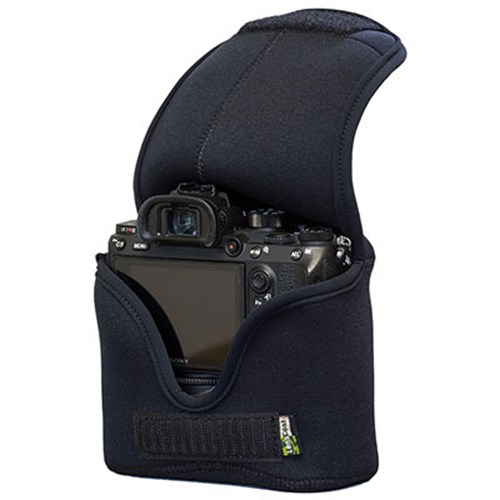 The LensCoat BodyBag M for Mirrorless Cameras with Grip in Black has been constructed from soft and shock-absorbing neoprene which protects the camera from nicks, dings and scratches caused by accidental impact. Additionally, the bag keeps the camera clear of dust and dirt as well as forming a protective layer against the elements. For ease of access and increased convenience a Velcro closure has been added.