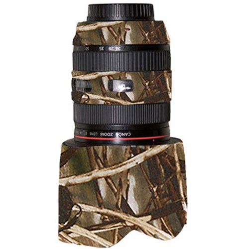 The LensCoat Lens Cover for the Canon 24-70mm f/2.8 L lens covers the lens with a 100% closed-cell neoprene coat, offering your valuable equipment some protection from bumps, jars, scrapes and nicks. Easy to install and remove, leaving no residue on the lens, LensCoat Lens Covers are ideal for nature and outdoor photographers, where the Realtree Advantage Max 4 pattern helps break up the shape of your lens, making it less noticeable to wildlife and allowing you to blend in with your surroundings. Lens Covers are also suited to sports shooters and photojournalists as the neoprene provides a thermal barrier, protecting your hands from cold lenses in lower temperatures. The LensCoat Lens Cover features clear plastic windows over the main lens dials and controls to ensure that using and mounting the lens isn't hindered in any way by having the Lens Cover attached.