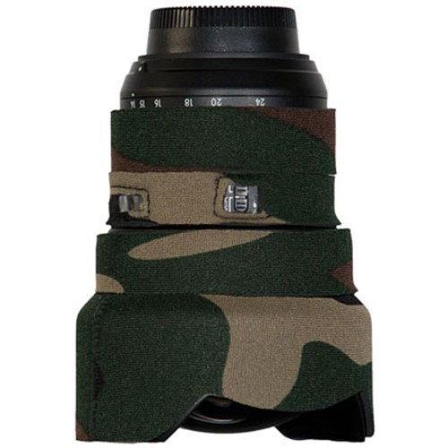 The LensCoat Lens Cover for the Nikon 14-24mm f2.8 AF-S lens protects the lens with a 100% closed-cell neoprene coat, offering your valuable equipment some resilience to bumps, jars, scrapes and nicks. Easy to install and remove, leaving no residue on the lens, LensCoat Lens Covers are ideal for nature and outdoor photographers. The Forest Green Camo pattern helps break up the shape of your lens, making it less noticeable to wildlife and allowing you to blend in with your surroundings. Lens Covers are also suited to sports shooters and photojournalists as the neoprene provides a thermal barrier, protecting your hands from cold lenses in lower temperatures. The LensCoat Lens Cover features clear plastic windows over the main lens dials and controls to ensure that using and mounting the lens isn't hindered in any way by having the Lens Cover attached.