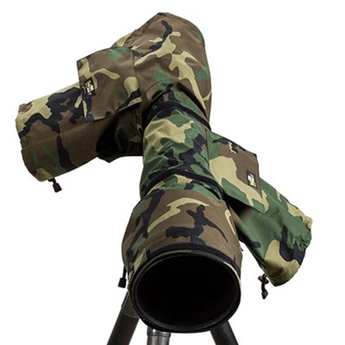 The LensCoat RainCoat 2 Pro - Forest Green provides protection for your camera and lens from the elements like rain, snow, salt spray, dirt, sand and dust, whilst allowing easy access to the camera and lens controls. The RainCoat 2 has all the same features as the original RainCoat but adds an additional integrated pocket with foldaway arm sleeve on the left side for easier access to zoom and focus. The RainCoat 2 comes in two sizes - Pro (for DSLRs with lenses from 200-400/300mm 2.8 - 800mm) and Standard (for DSLRs with small lenses up to 100-400/400mm f5.6). The RainCoat 2 is constructed from a lightweight waterproof, breathable poly tricot material. Available in Black, Green, Navy, Realtree Max4, Realtree AP Snow, Digital Camo, and Forest Green camouflage pattern. The seams are tape sealed for maximum protection.