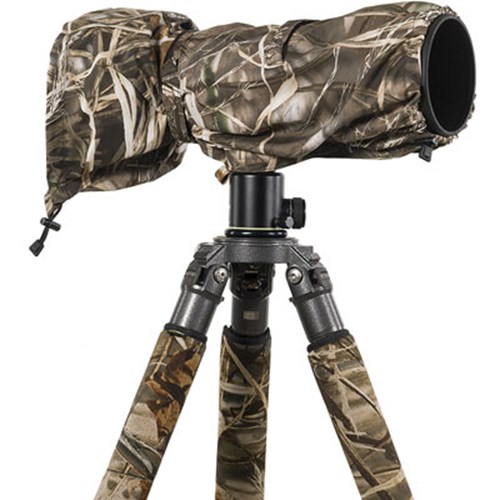 The LensCoat RainCoat RS (Rain Sleeve) Large provides protection for your camera and lens from the elements like rain, snow, salt spray, dirt, sand and dust while allowing you easy access to the camera and lens controls. The RainCoat RS comes in three sizes: small (for camera body and lens up to 10") and medium (for camera body and lens up to 15") and large (for camera body and lens up to 21"). The RainCoat is constructed from a lightweight waterproof, breathable material. Available in Black, Green, Navy, Realtree Max4, Realtree AP Snow, Digital Camo, and Forest Green camouflage pattern. The seams are tape sealed for maximum protection. The RainCoat RS goes on quickly and easily. Its versatility through the use of the cinch straps (on medium and large models) allows you to adjust the length of the cover and to keep it snug around your lens. You can also access the camera through the rear opening and the lens through the hook & loop bottom closure. No dedicated eyepiece required.