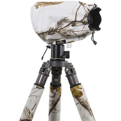 The LensCoat RainCoat RS (Rain Sleeve) Small provides protection for your camera and lens from the elements like rain, snow, salt spray, dirt, sand and dust while allowing you easy access to the camera and lens controls. The RainCoat RS comes in three sizes: small (for camera body and lens up to 10") and medium (for camera body and lens up to 15") and large (for camera body and lens up to 21"). The RainCoat is constructed from a lightweight waterproof, breathable material. Available in Black, Green, Navy, Realtree Max4, Realtree AP Snow, Digital Camo, and Forest Green camouflage pattern. The seams are tape sealed for maximum protection. The RainCoat RS goes on quickly and easily. Its versatility through the use of the cinch straps (on medium and large models) allows you to adjust the length of the cover and to keep it snug around your lens. You can also access the camera through the rear opening and the lens through the hook & loop bottom closure. No dedicated eyepiece required.