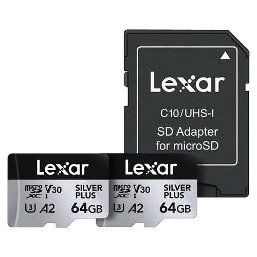 Lexar Silver Plus 64GB UHS-I V30 (205MB/s) microSDXC - Twin pack