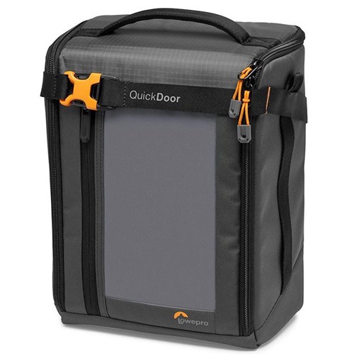This Lowepro GearUp box is big enough to hold a professional camera with its attached lens. You can also hold an additional lens and small accessories.