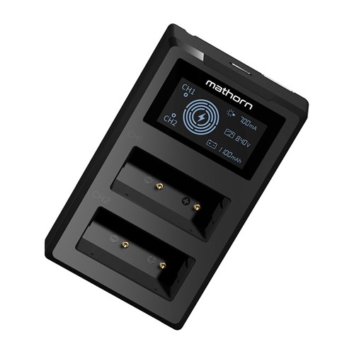 The Mathorn Dual Charger MBC-D105 USB-C is a compact, dual-channel USB-C charger for Canon LP-E12 batteries. It features a backlit LCD display showing voltage, current, charge delivered, and battery level. Using pulsed charging technology, it maintains cell health and minimises heat for safe, long-term charging. With built-in USB-A and USB-C inputs, a USB-A power cable, it’s ideal for home, travel, or mobile power banks.