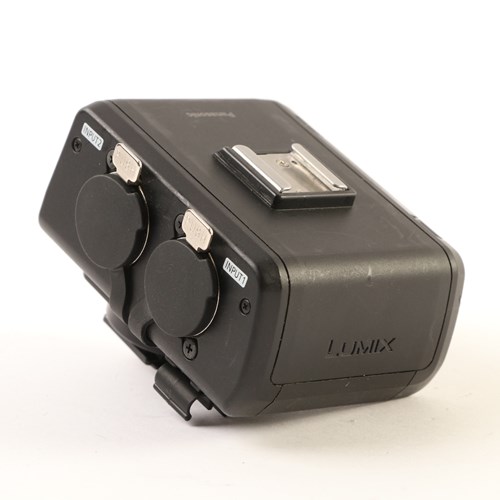 - Connects to Panasonic DC-GH5 via the hotshoe