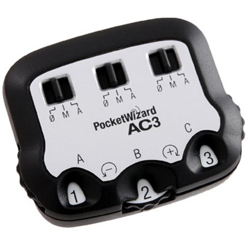 The Pocket Wizard AC3 ZoneController allows you to control your flash set up directly from your camera's position. Simply add it to your on-camera MiniTT1Transmitter or FlexTT5 Transceiver and you instantly have three zones of flash control whether working in E-TTL II or Manual model. Put your flashes wherever you want without worrying about having to access them during a shoot. With the AC3 ZoneController, you are in total control of your flash.Three clearly labeled dials allow you to increase or decrease power to three zones of flash in 1/3-stop increments with a range of up to six stops. Three switches allow you to change zones between Manual, Auto (PowerTracking/E-TTL II) or OFF. Best of all, the design is simple with an intuitive interface. A firmware upgrade is now available for TT1 and TT5 via the Pocket Wizard website.