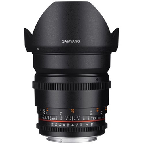 Samyang 16mm T2.2 II is one of Samyang Optics VDSLR lens line for APS-C image sensor size. The lenses produce the same image colour and have a united location of aperture and focus gear ring to maximise the convenience when filming.