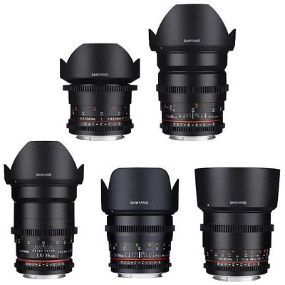 - Includes 5 Samyang VDSLR MkII Cine lenses