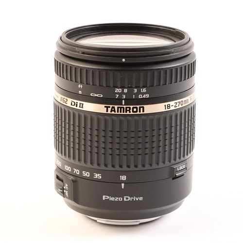 The Tamron 18-270mm f3.5-6.3 Di II PZD lens is a 15x zoom lens that features Tamron's unique Piezo Drive ultrasonic motor for silent, precise and extraordinarily fast autofocus. The 15x zoom offers focal lengths from 18mm at the wide-angle end up to a telephoto 270mm (29-432mm in 35mm equivalent) making it an ideal, all purpose lens. Despite its impressive performance, the Tamron 18-270mm f3.5-6.3 Di II PZD lens is both lightweight and compact, making it a great choice for travel photography.