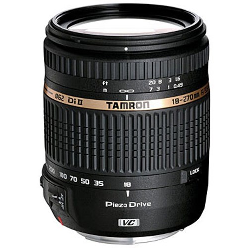 The Tamron 18-270mm f3.5-6.3 Di II PZD lens is a 15x zoom lens that features Tamron's unique Piezo Drive ultrasonic motor for silent, precise and extraordinarily fast autofocus. The 15x zoom offers focal lengths from 18mm at the wide-angle end up to a telephoto 270mm (29-432mm in 35mm equivalent) making it an ideal, all purpose lens. Despite its impressive performance, the Tamron 18-270mm f3.5-6.3 Di II PZD lens is both lightweight and compact, making it a great choice for travel photography.