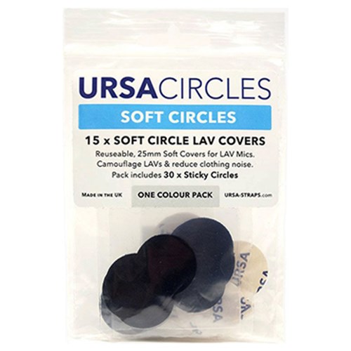 The URSA Soft Circles + Stickies are used to cover the microphone and stick it under the clothes. The 2.54 cm URSA Circles are made of soft and stretchable material to easily cover the Lavalier microphone. These circles are then stuck to the sticky circle adhesive for a firm grip. The Black Soft Circles are reusable, discreet, and minimise the clothing noise. They also protect from wind noise and