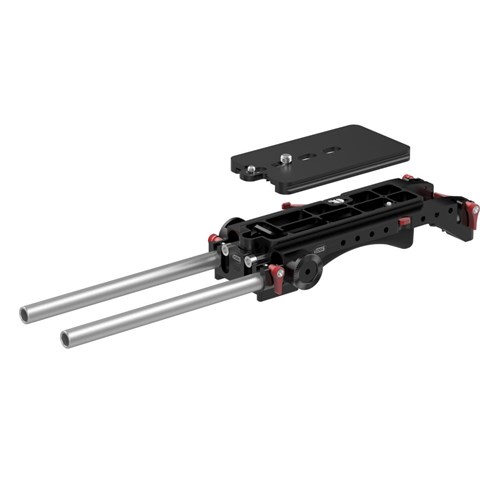The Vocas USBP-15 MKII is a universal base plate to use any camera as a shoulder camera. Because the rails at the front are height-adjustable, the USBP-15 MKII fits almost any camera. This allows this versatile base plate to be used with different setups and camera/lens combinations.