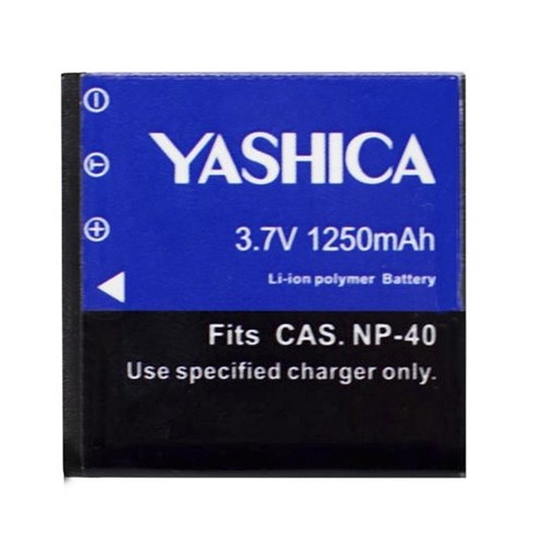 The Yashica NP-40 is a 3.7V 1250mAh li-ion polymer rechargeable battery designed for the Yashica City 100 and City 200. With no memory effect, it can be recharged at any time, making it ideal for consistent, worry-free shooting on the go.
